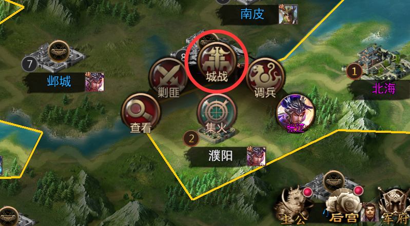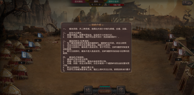 2. 城池战场分为攻击和防守两个阵营,玩家可派遣部队参加城池进攻或防守战争