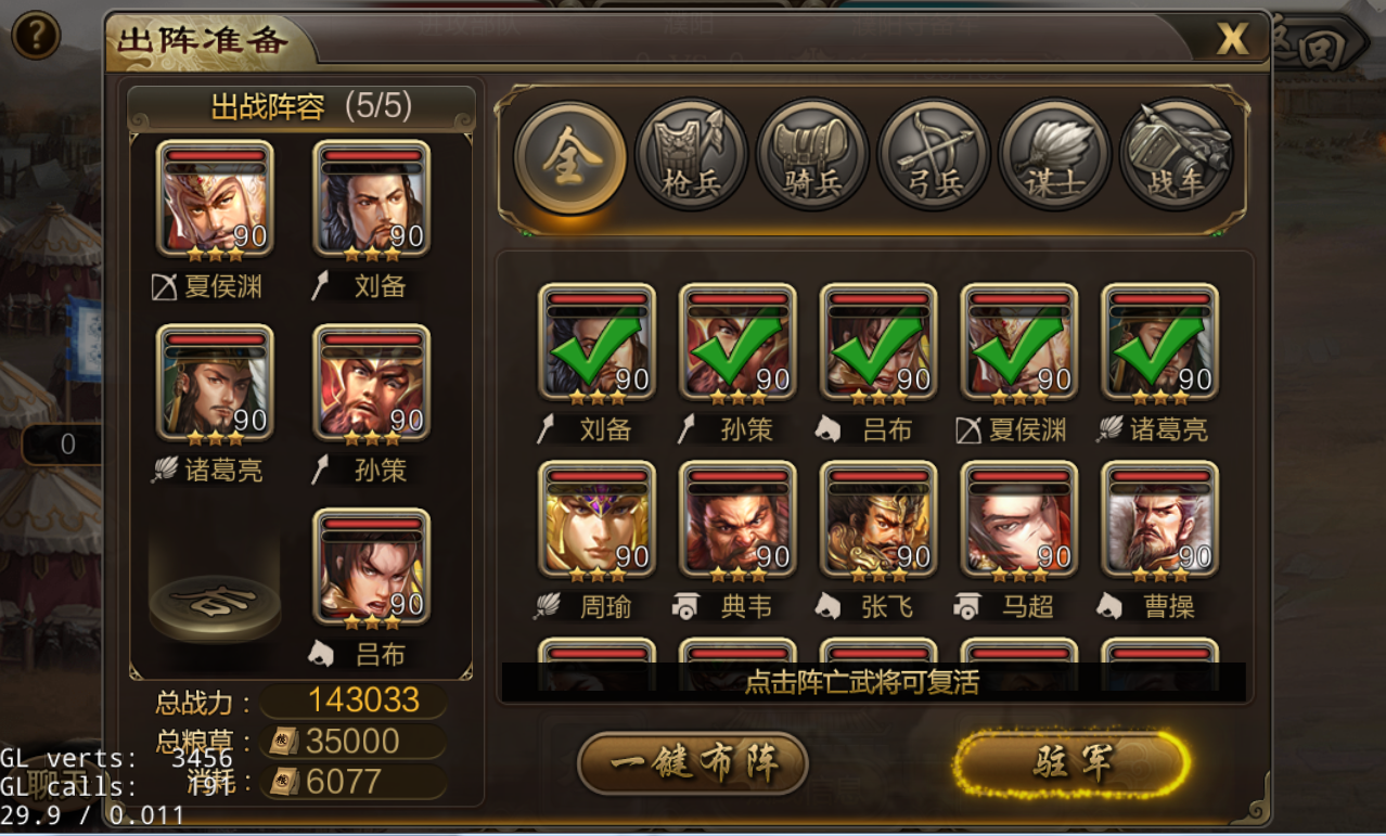 3. 无论是进攻部队或是防守部队,都需要派满5名武将才可组建一直队伍,不满员的队伍无法派遣的战场中