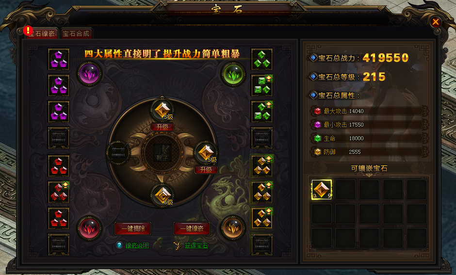 玩家们可以在装备上镶嵌攻击类。防御类和生命类宝石,为装备附加额外的属性加成