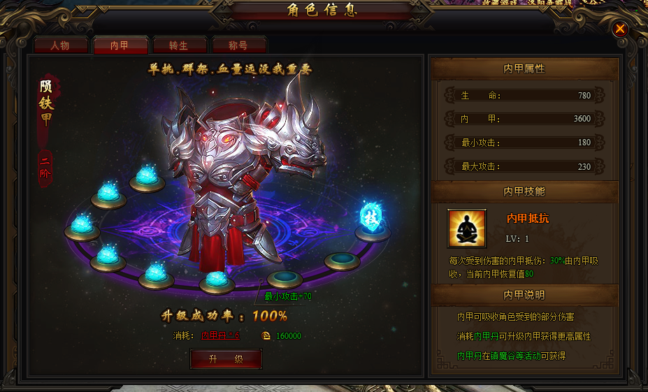 内甲系统是游戏PVP的重要系统,可以抵挡其他玩家对你的伤害,所有喜欢参与PVP的玩家一定不要错过内甲系统。