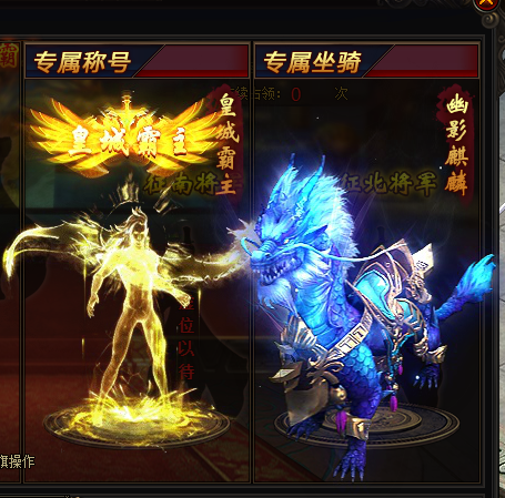赢得洛阳争霸战的军团可获得象征荣耀的标识称号。军团长还可额外获得特殊坐骑。大幅提升属性以及强大的专属技能。