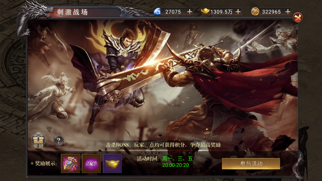 4. 活动期间,泡点、击杀怪物皆可获得积分。