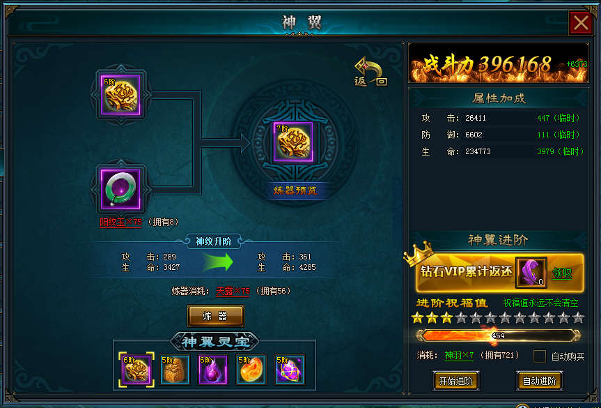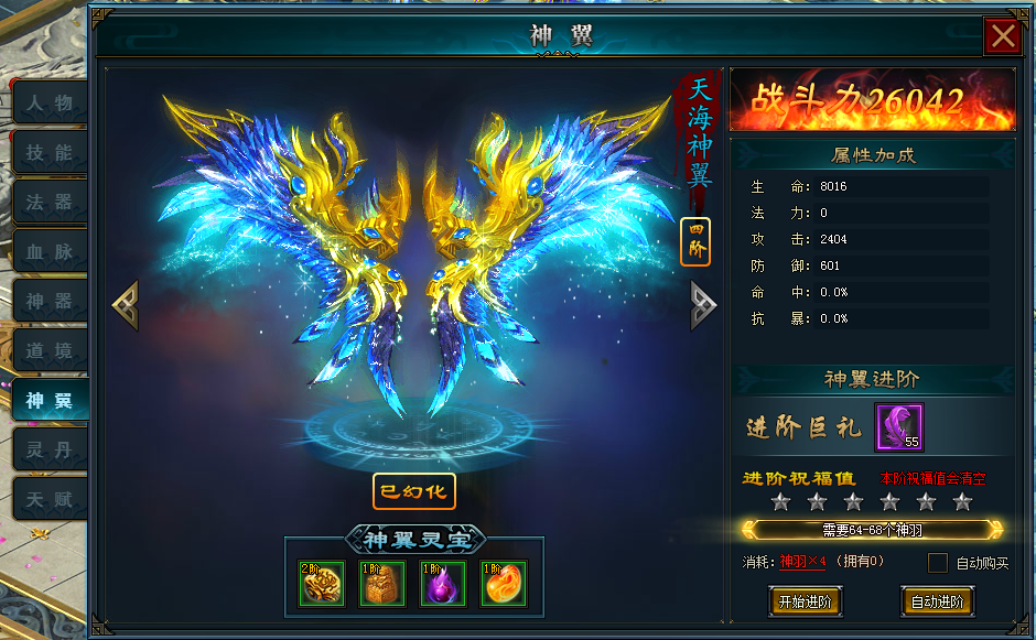另外,高等阶的神翼,还能携带神翼灵宝,进一步增强神翼的能力。