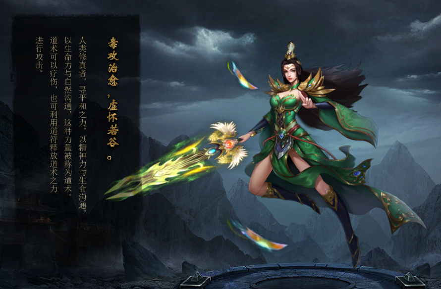道士是优雅而强力的职业。他们会使用众多神秘的技能,能够召唤神兽作为帮手,轻松应对各种危险。他们是战争中的多面手,能够帮助友军治疗伤势的“恢复术”、能够增强己方的防御能力的“护盾术”、能够杀人于无形的“毒药术”、能够隐藏自身的“遁隐术”。超远的道术攻击能力,持续不断的攻击伤害,他们是群体PK中不可缺少的主力。