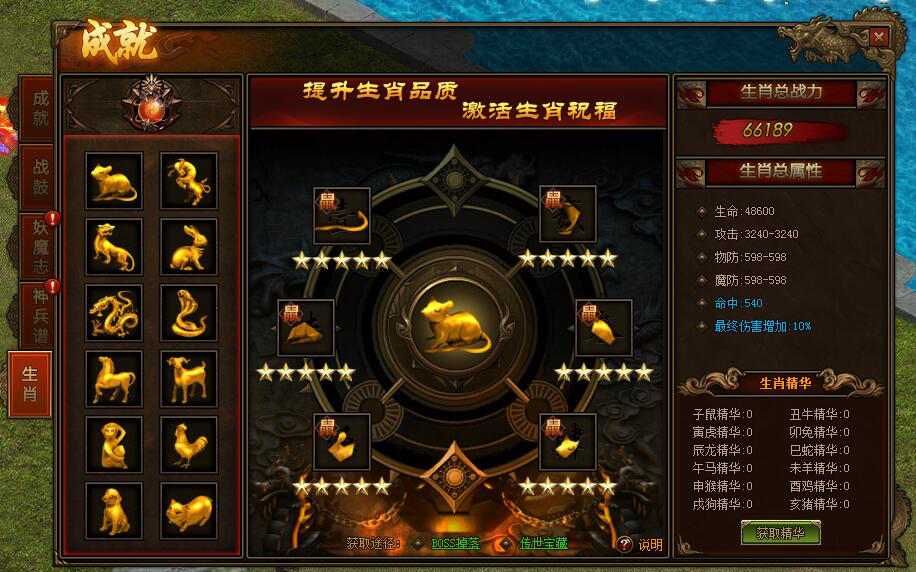 BOSS掉落、传世宝藏产出生肖碎片