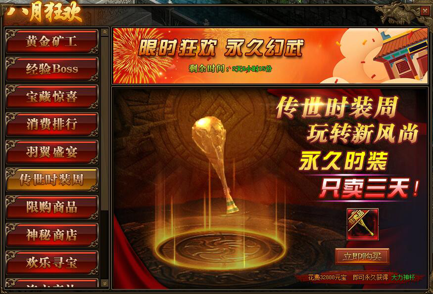 1.活动期间,玩家可购买获得永久幻武-大力神杯;