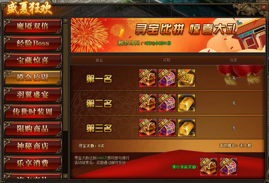 1.活动期间,玩家消费满30万元宝参与排行