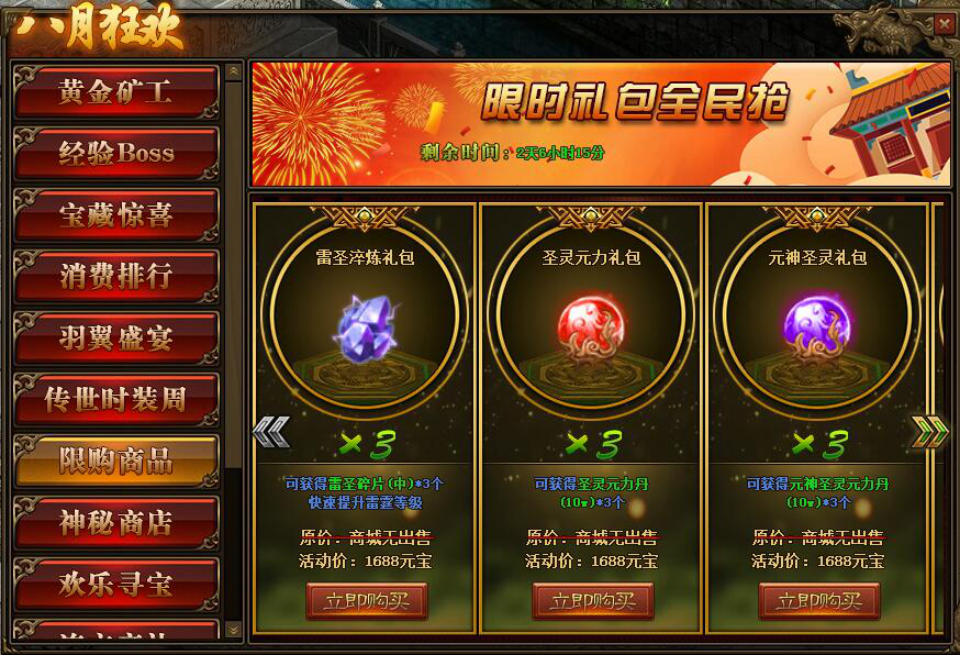 1.活动期间,玩家可在活动面板购买限购商品;(可翻页)