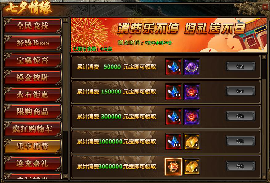 1.活动期间,玩家累计消费满足要求,可以领取境界修为、本职业星石、传世灵戒等相应奖励;