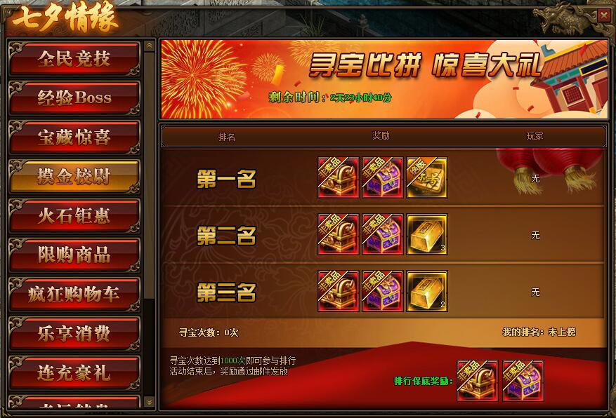 1.活动期间,玩家寻宝次数达到1000次即可参与到摸金校尉排行榜中