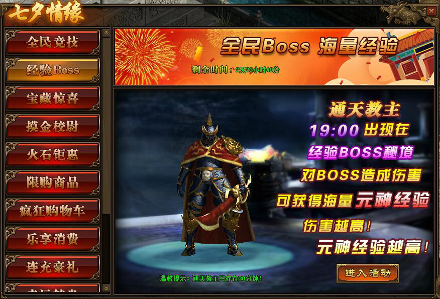 2.活动中,玩家对BOSS造成的伤害,将在活动结束后转换成元神经验并发放;