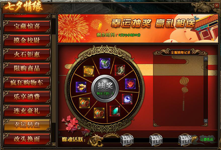 2.活动期间内,根据抽奖次数可用于抽取转盘内奖励道具,奖励道具不会重复获得;