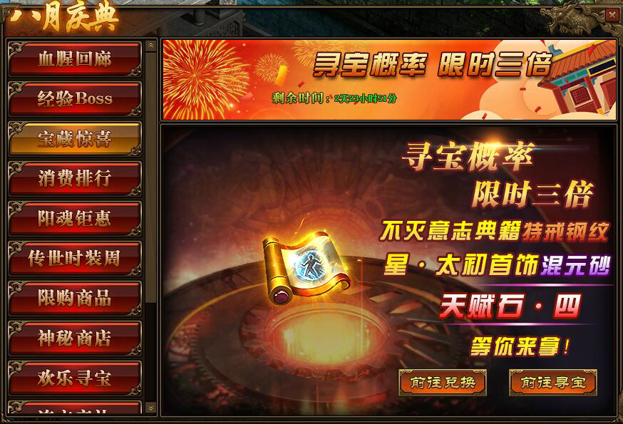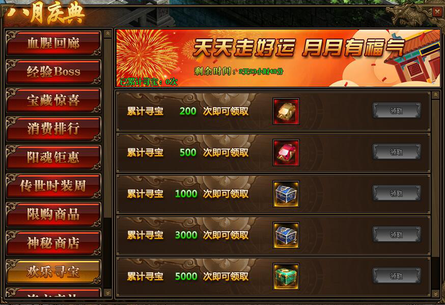 1.活动期间,玩家累计寻宝次数满足要求,可以领取高级魂石等相应奖励;
