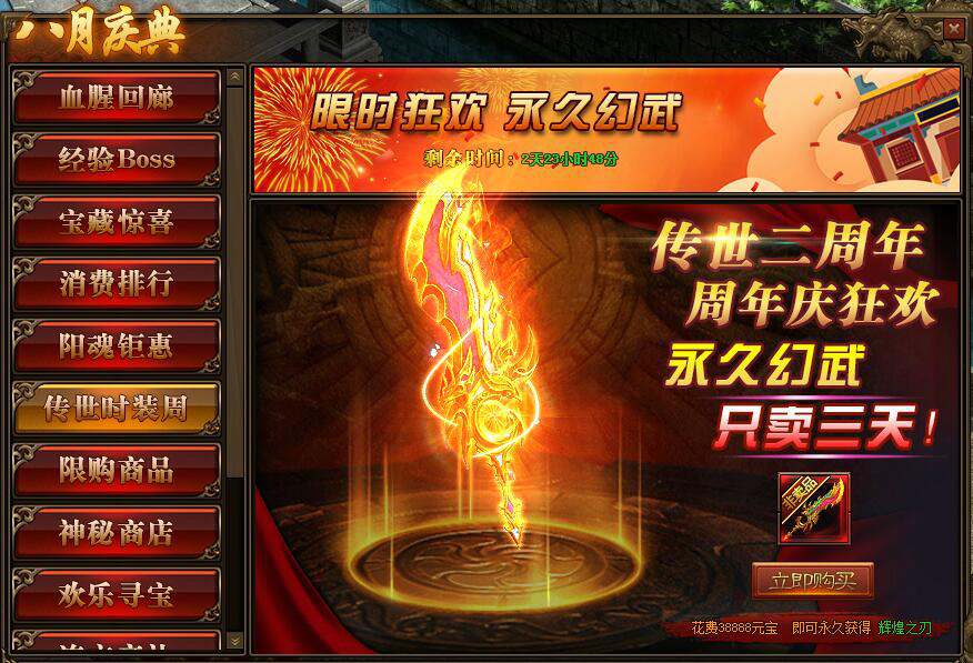 1.活动期间,玩家可购买获得永久幻武-辉煌之刃;