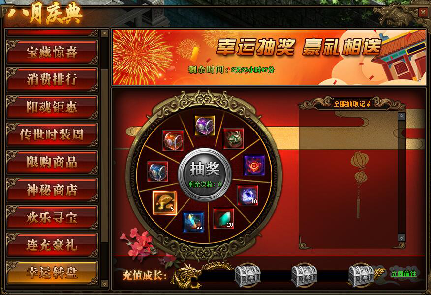 1.活动期间内,每日充值可增加充值成长值,达到一定充值成长值后可领取抽奖次数,每日最多获得3次抽奖机会;