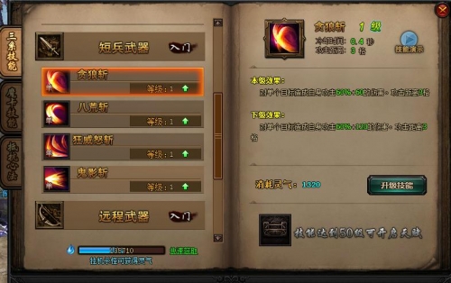 2、可消耗灵气对技能进行提升。