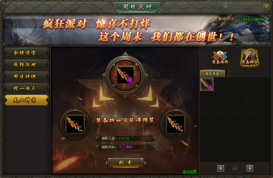 1.周日派对-天工神匠添加装备拆分功能