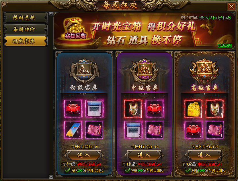 1.每周狂欢新增限时活动-时光宝库