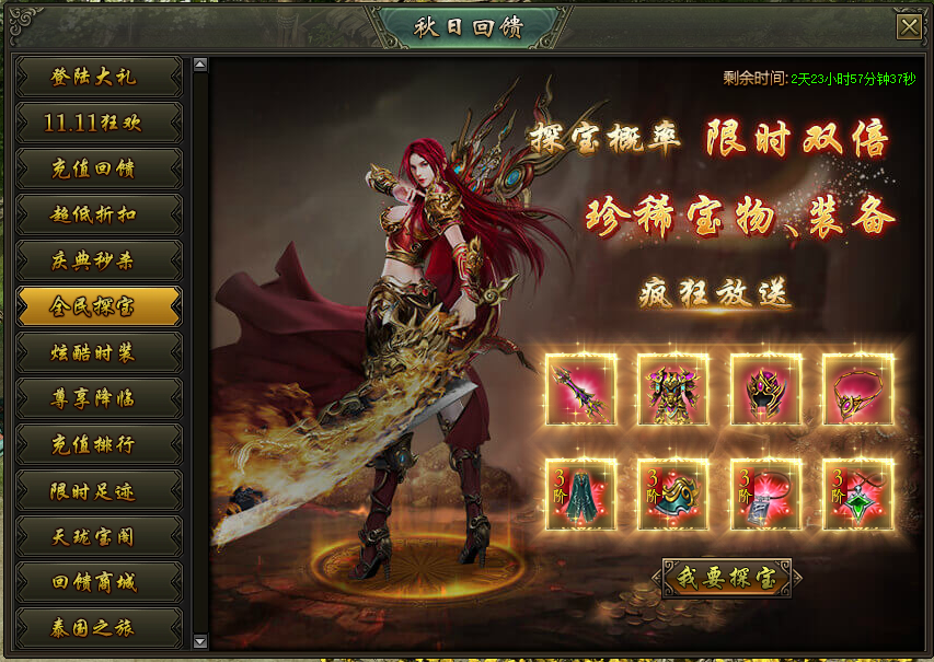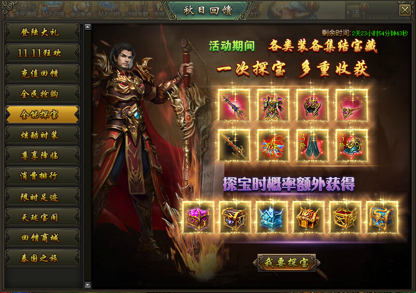 活动说明:活动期间,各类装备集结宝藏,一次探宝多重收获