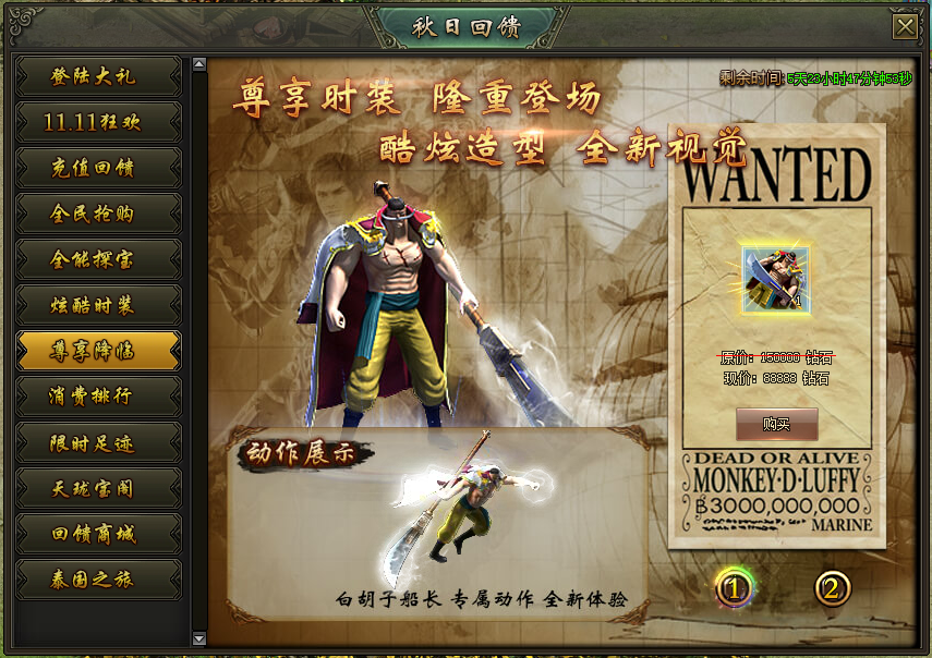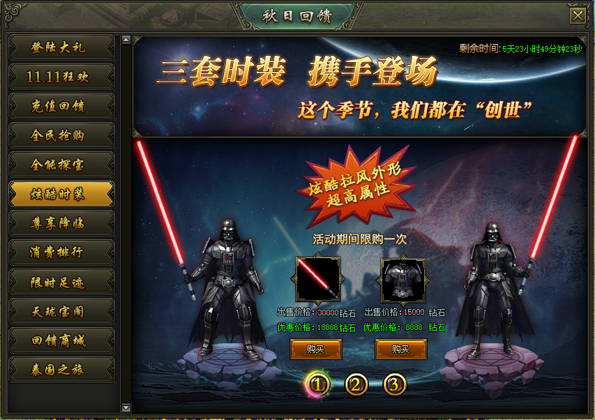 活动说明:活动期间,绝版时装限时出售,炫酷拉风外型、超高属性都在这里!