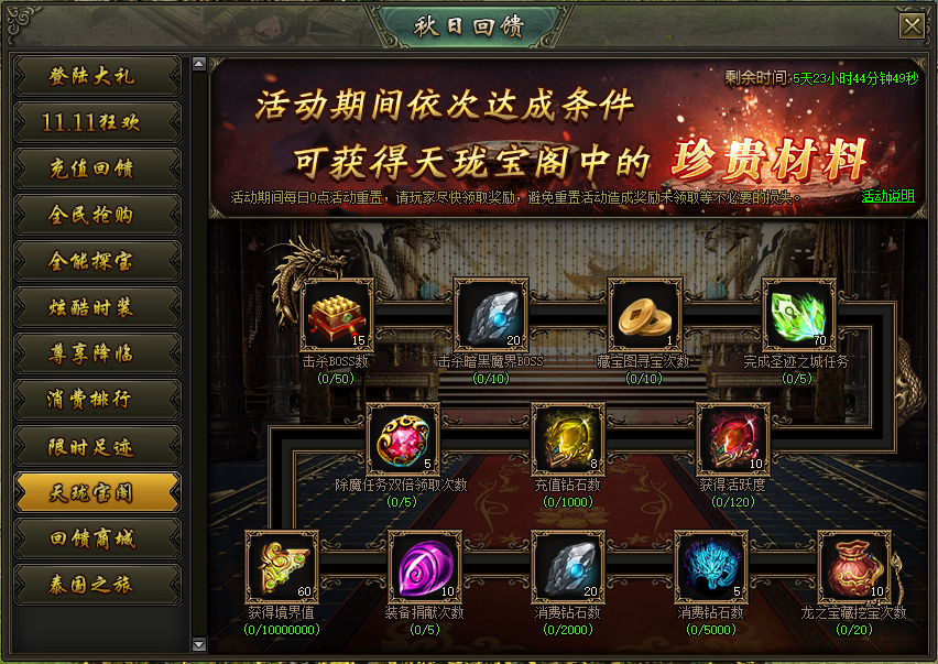 活动说明:活动期间,完成天珑宝阁任务可获得大量奖励!