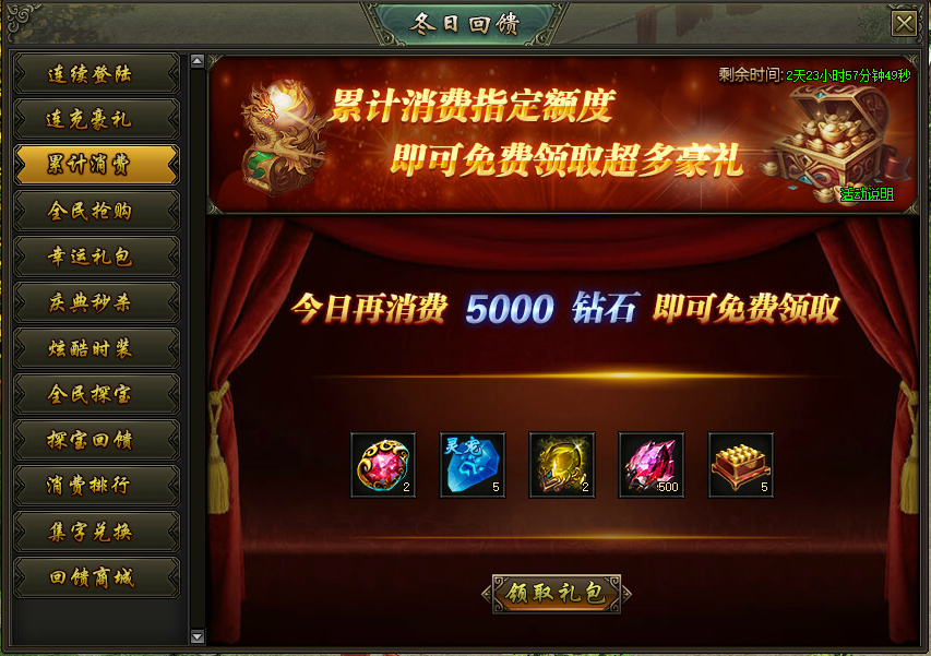 活动说明:活动期间,累计消费达到指定额度,即可领取超多豪礼