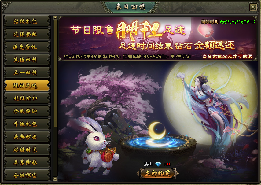 活动说明:活动期间,限时售卖足迹,活动时间结束钻石全额返还