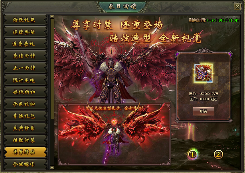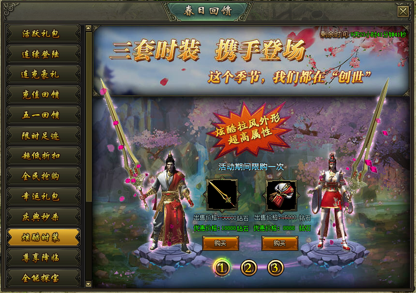 活动说明:活动期间,绝版时装限时出售,炫酷拉风外型、超高属性都在这里!