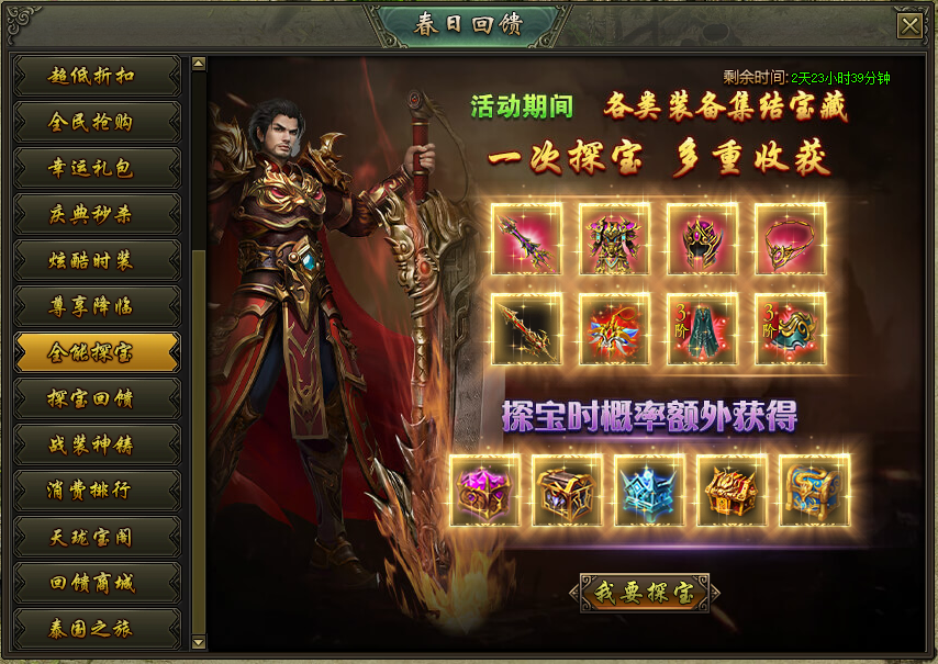 活动说明:活动期间,各类装备集结宝藏,一次探宝多重收获