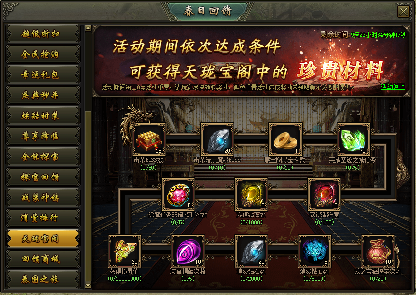 活动说明:活动期间,完成天珑宝阁任务可获得大量奖励!