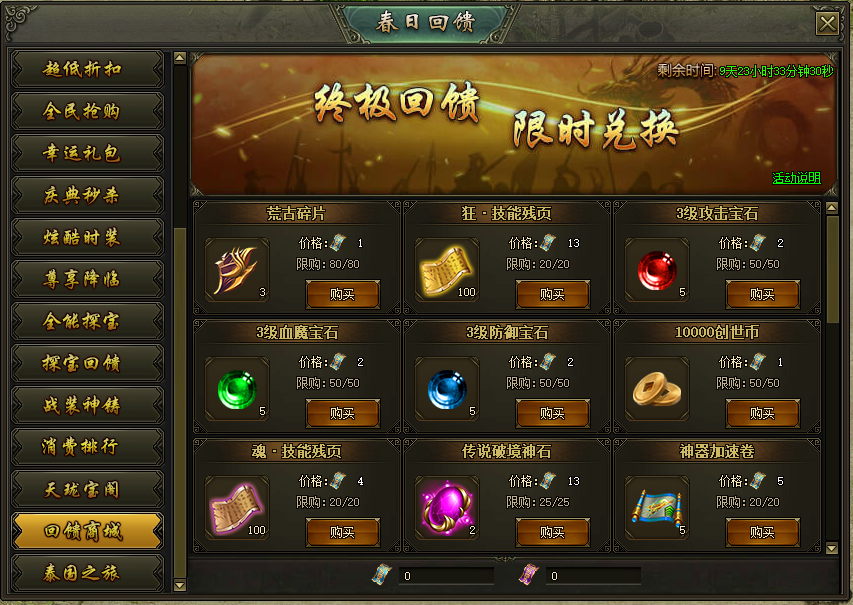 活动说明:活动期间,可使用充值回馈卷和消费回馈卷兑换大量奖励