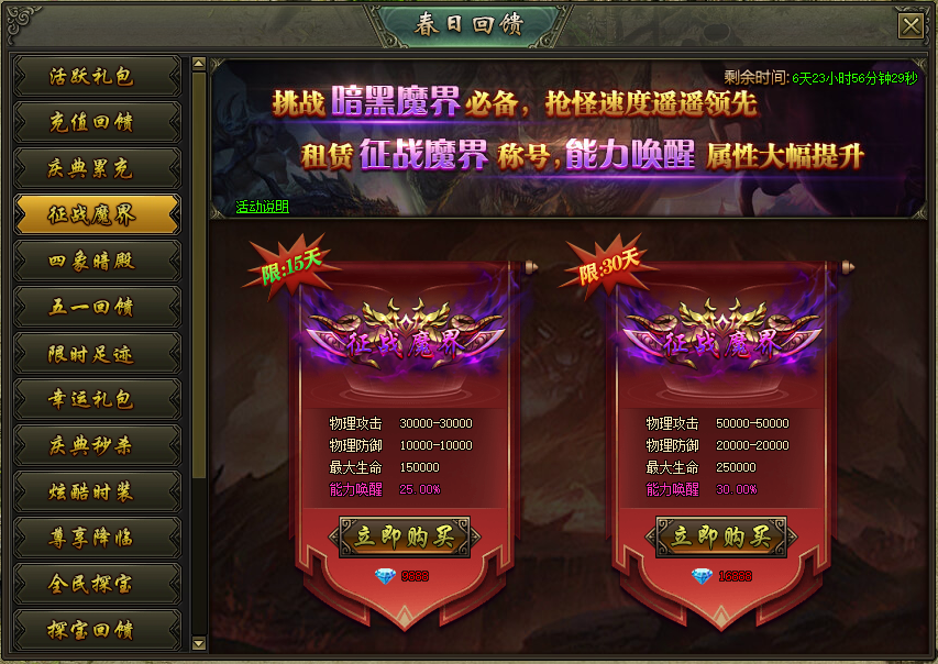 活动说明:活动期间,租赁征战魔界称号,能力唤醒属性大幅提升
