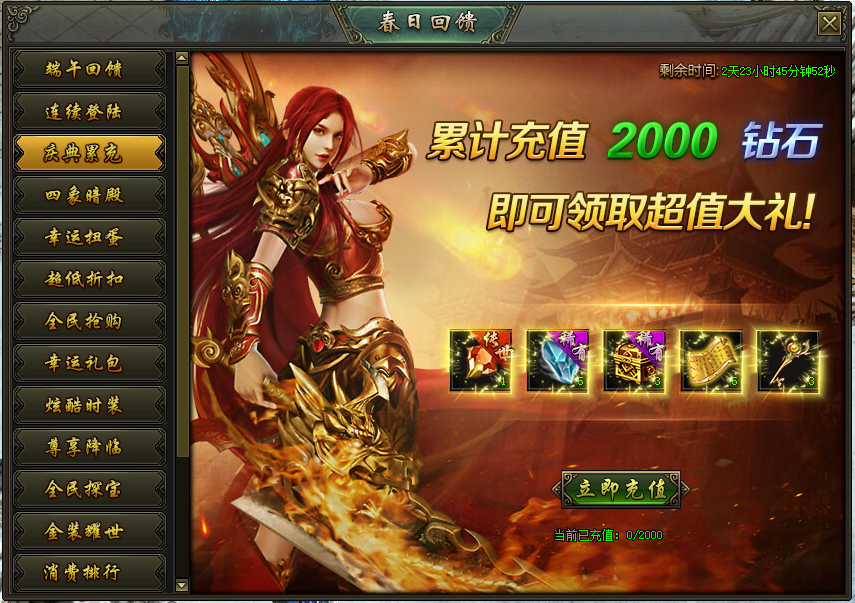 活动说明:活动期间,每天累计充值到指定档位即可领取对应奖励
