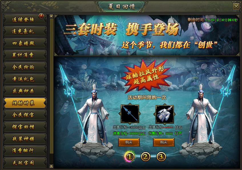活动说明:活动期间,绝版时装限时出售,炫酷拉风外型、超高属性都在这里!
