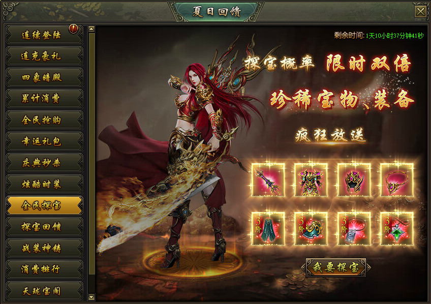 活动说明:活动期间,龙之宝藏产出圣装及神饰的概率限时翻倍,极品圣装、高级神饰大放送!