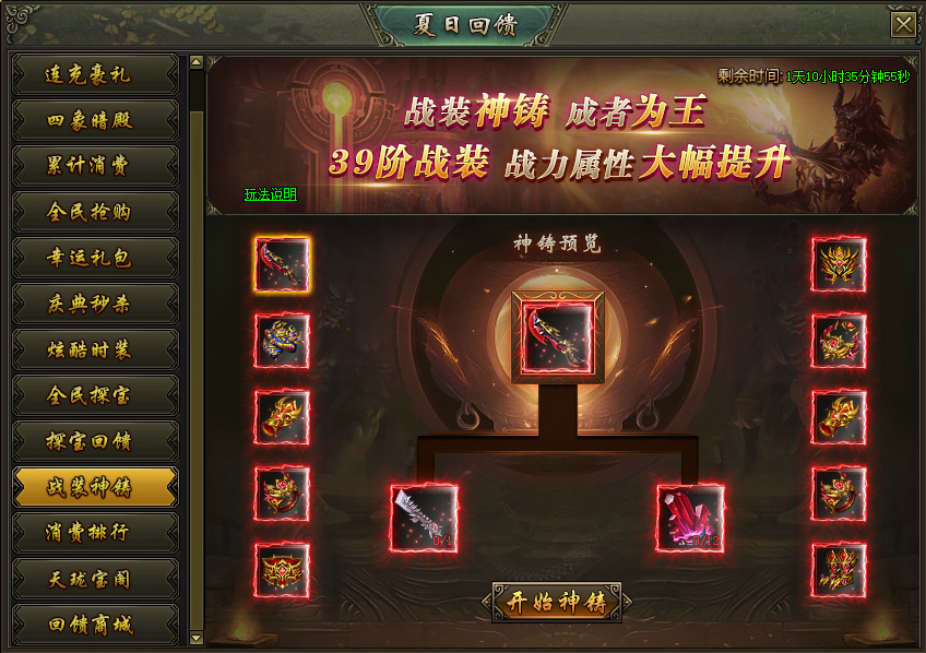 活动说明: 活动期间,限时开放39阶装备合成,战力疯狂提升