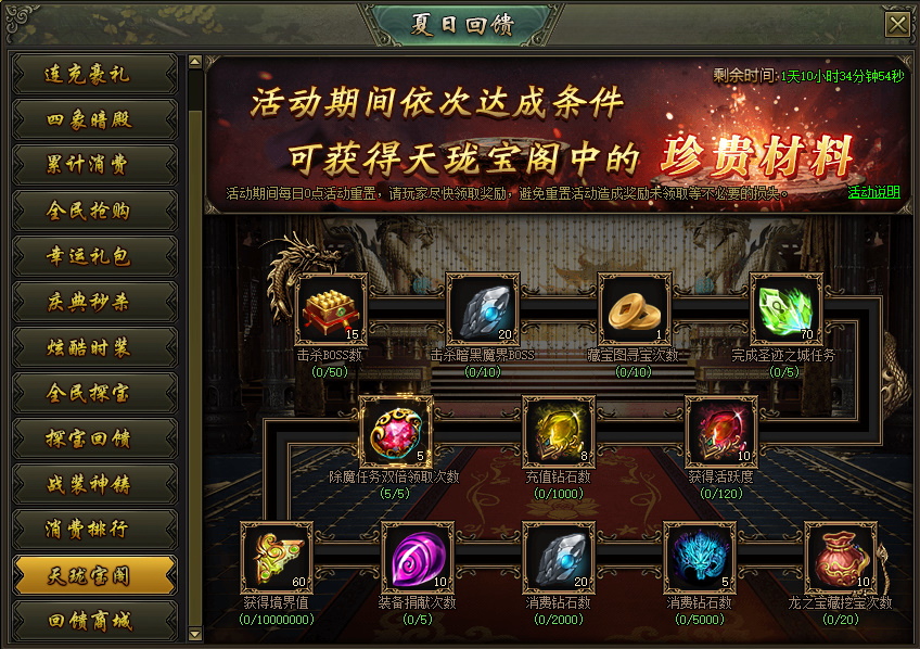 活动说明:活动期间,完成天珑宝阁的任务可获得对应奖励