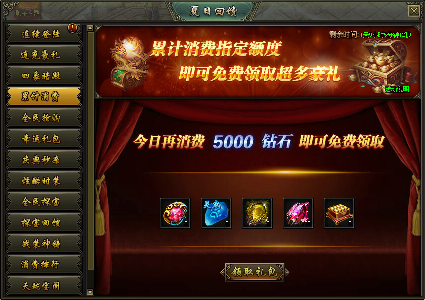 活动说明:活动期间内累计消费钻石数达到指定额度可领对应奖励