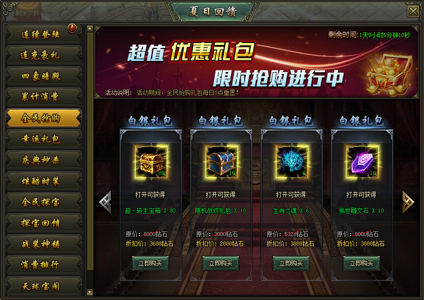 活动说明:活动期间,购买礼包获得抽奖次数,购买礼包次数和抽奖次数每日0点重置