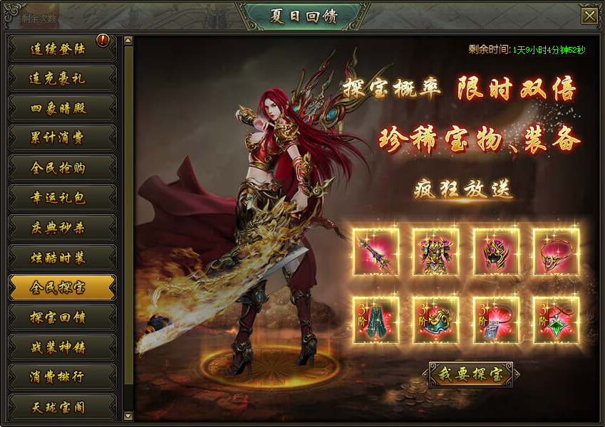 活动说明:活动期间,龙之宝藏产出圣装的概率限时翻倍,极品圣装、珍稀宝物大放送!