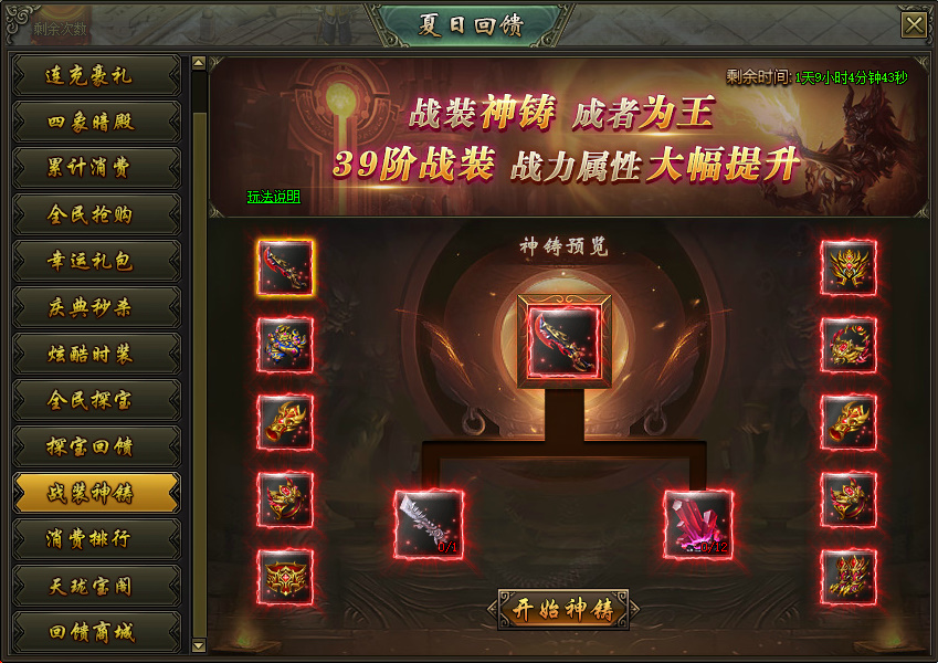 活动说明:活动期间,限时开放39阶装备合成,战力疯狂提升