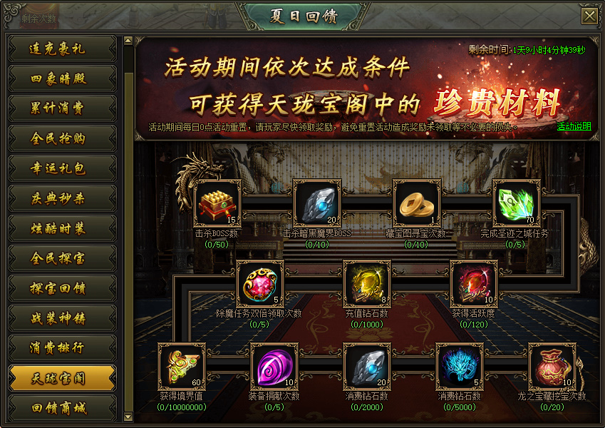 活动说明:活动期间,完成天珑宝阁的任务可获得对应奖励