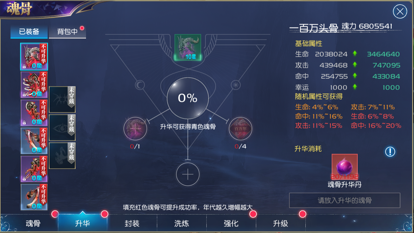 使用魂骨和同年代的魂骨残魂可升华魂骨颜色,升华后角色属性会获得大幅提升。