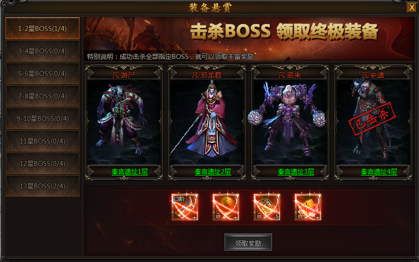 击杀野外BOSS可以掉落装备,BOSS星级越高,掉落极品装备的概率越高