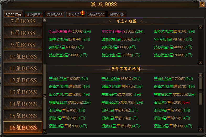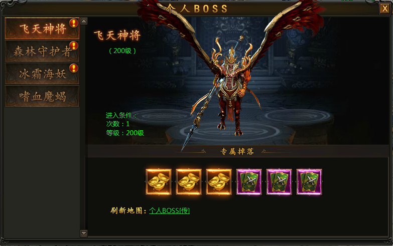 击杀个人BOSS可以掉落大量BOSS积分,BOSS积分可在积分商城兑换装备