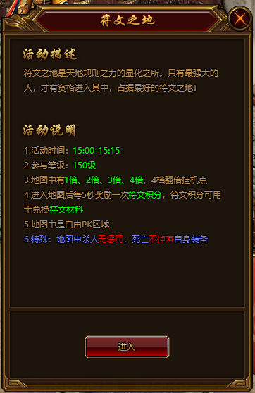 开启后玩家可通过主城活动NPC处进入活动地图,可以获得大量的符文积分