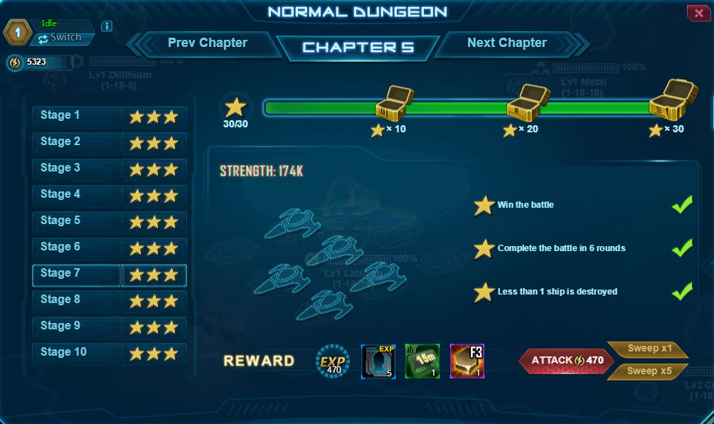 这是游戏内最主要的,可以说是中后期唯一快速获得经验的手段,一定要重视起来。这里就要说到我们在第2点里提到的“VITALITY”,每次进行挑战关卡就需要消耗这个资源,挑战的关卡等级越高需要消耗的越多,但每次消耗的VITALITY都会以1:1的比例转换成经验值给你,而且算上军衔的加成后更加划算,例如花费320点VITALITY攻打关卡后实际可获得336点经验值,以我现在玩到50级时的感受,每天通过挑战关卡至少能获得3万点以上的经验值,而且还能得到事务官经验卡、建筑加速卡和重要的子舰进阶材料等副产品,绝对物超所值。而这个时候的主线任务可能只有可怜的1000点经验值,连每日任务宝箱赠送的经验值也不够看了,现在知道我为什么要说每天花费20IC购买“VITALITY”的价值了吧!
