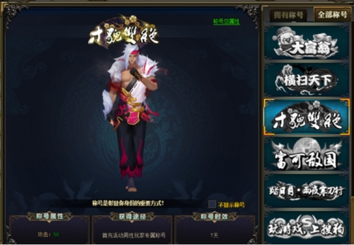 玩家通过达成指定目标可获得称号