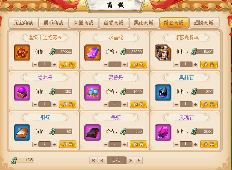 1. 玩家在等级达到25级时候开启帮会系统,玩家可以创建帮会,消耗20元宝。或者申请加入别人帮会