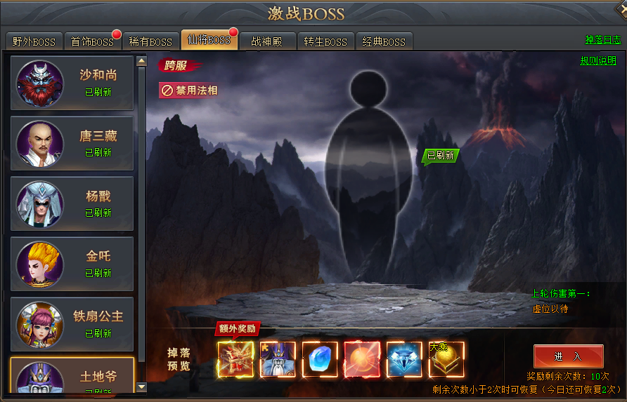 入口位于激战BOSS内的仙将BOSS页签